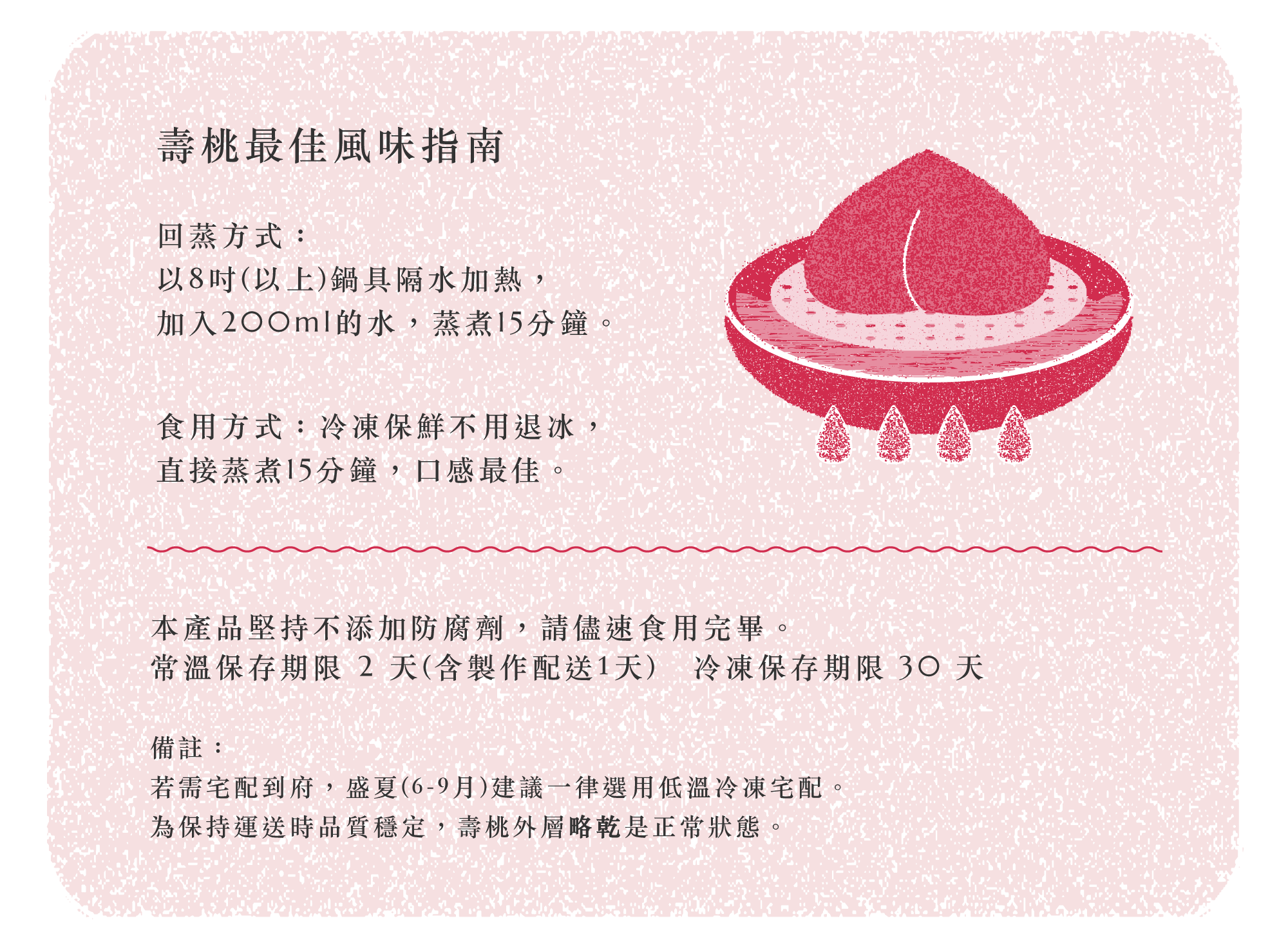 +六色壽桃:紅豆/綠豆/麻芛/紫芋/乳酪/芝麻