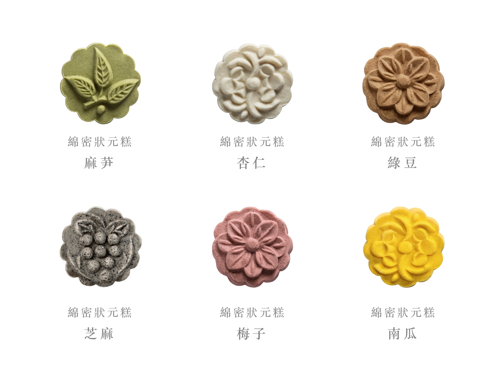 狀元糕源於喜事訂婚糕點,也為糕餅文化由來之一。糯米粉須以手工攪拌與各食材揉合才不會結團是糕仔好吃的秘訣,綿細紮實能入口即化,甜度適宜帶來樸實高雅的滋味。狀元糕承載喜餅禮俗、祈福祭祀等許多節日祝福象徵,更是林金生香百年最重要的傳承。